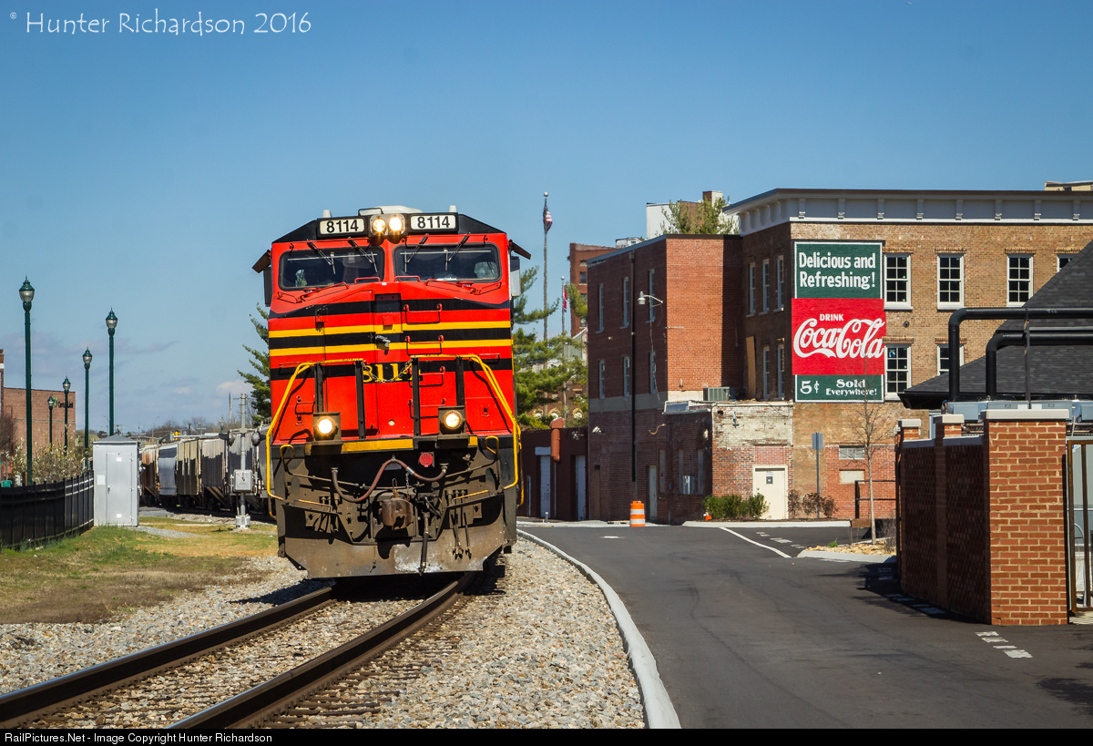 On a beautiful March afternoon, Norfolk Southern's "Original NS" heritage unit leads westbound 37Q through the recently revitalized corner of downtown Johnson City, Tennessee.