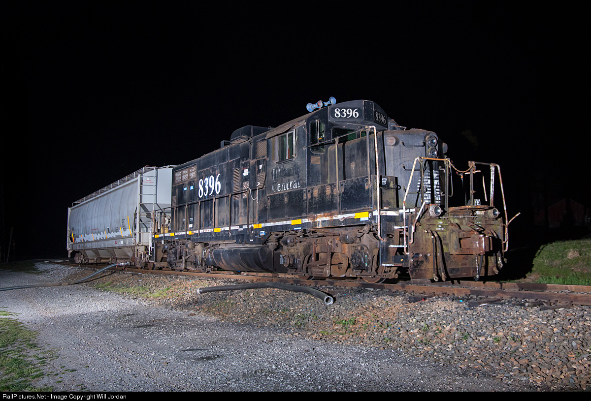 | Former Illinois Central GP10 8396 is one of two locomotives acting as the current motive power on the Hartwell Railroad Athens Branch. Here, it is seen tied down with a single hopper between Athens and Nicolson. |