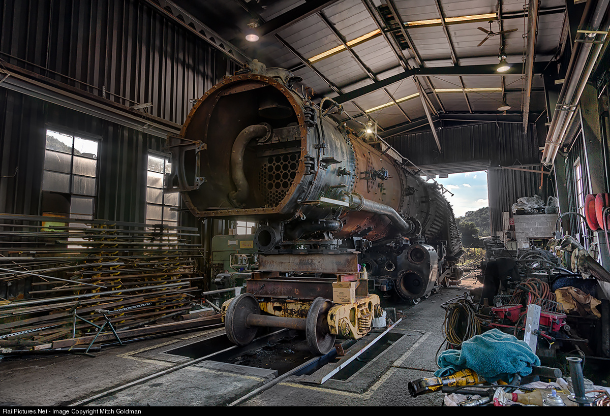 Chesapeake & Ohio's No.1309 is a 2-6-6-2 H-6 class Mallet. The locomotive is one of ten of her class and one of 251 2-6-6-2's owned by the C&O. Built in Eddystone, PA in September of 1949 by the Baldwin Locomotive Works, No. 1309 turned out to be the last Mallet ever constructed in the US and the last domestic steam locomotive built by Baldwin. The C&O retired No. 1309 in 1956, though she remained in the Peach Creek Terminal Roundhouse until donated to the museum in 1972. Only one other example of this class survives today, (No. 1308), and can be found on display in Huntington, WV. No. 1309 is currently undergoing a restoration to operation as seen here in the photo above in the engine shop in Ridgley, WV at the Western Maryland Scenic Railroad. And, yes - she'll fit just fine on the turntable at Frostburg!