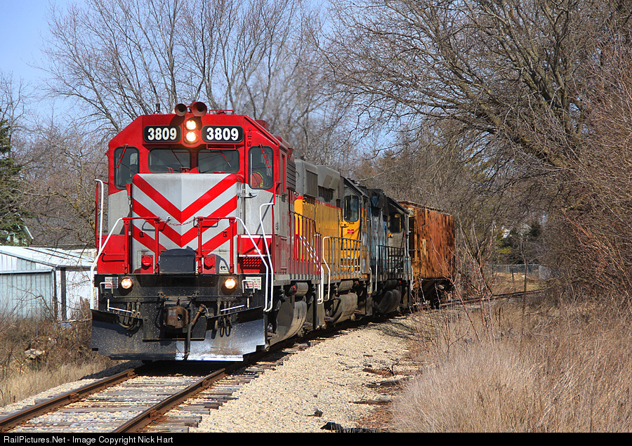 RailPictures.Net Photo: WSOR 3809 Wisconsin & Southern EMD GP38-2 at Iron Ridge, Wisconsin by Nick Hart