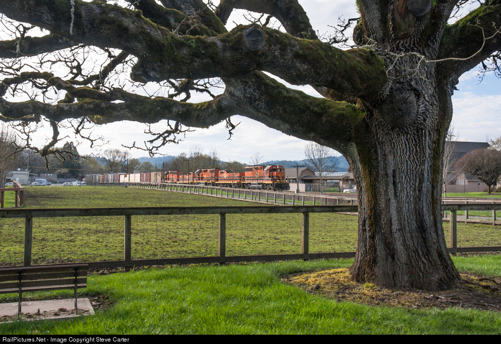The Toledo Hauler is just about finished with it's journey from Toledo to Albany, as it rolls through the campus of the Oregon State University in Corvallis. The regular appearance of this train doesn't seem to attract much attention by the students and staff, but the large number of railfans in the area drew some funny looks.