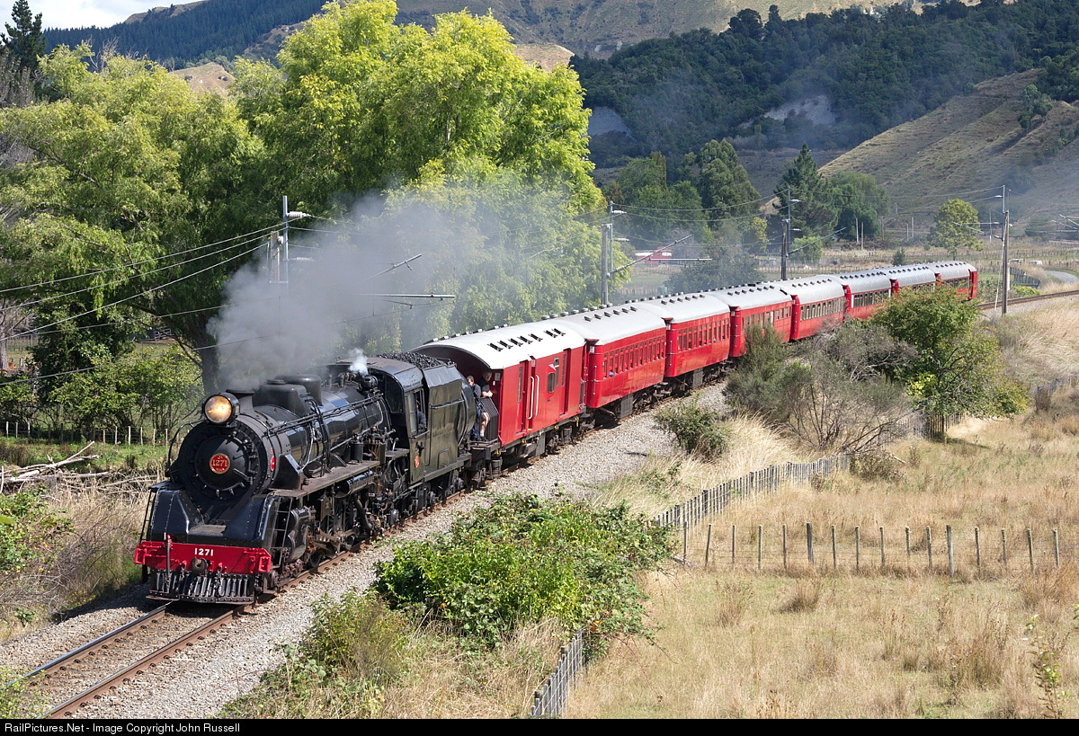 Ja 1271 steams north through Mangaweka working a special to Taihape on a re-alignment opened in 1981 which includes spectacular viaducts, two being over 250 ft/ 78m high. 1271 was built at NZR Hillside in Dunedin and was among the very last steam locomotives to enter service. After restoration, it returned to mainline running in 1997.