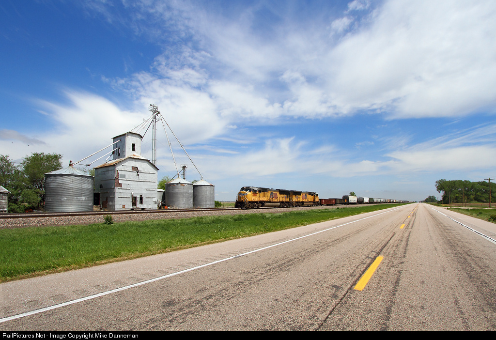 With U.S. Highway 30 pavement following Union Pacific’s main line from Omaha to North Platte and beyond for most of the distance, it only seems natural to include it in this view of a westbound manifest freight about to pass the old elevators at Havens, Nebraska, on May 22, 2014.