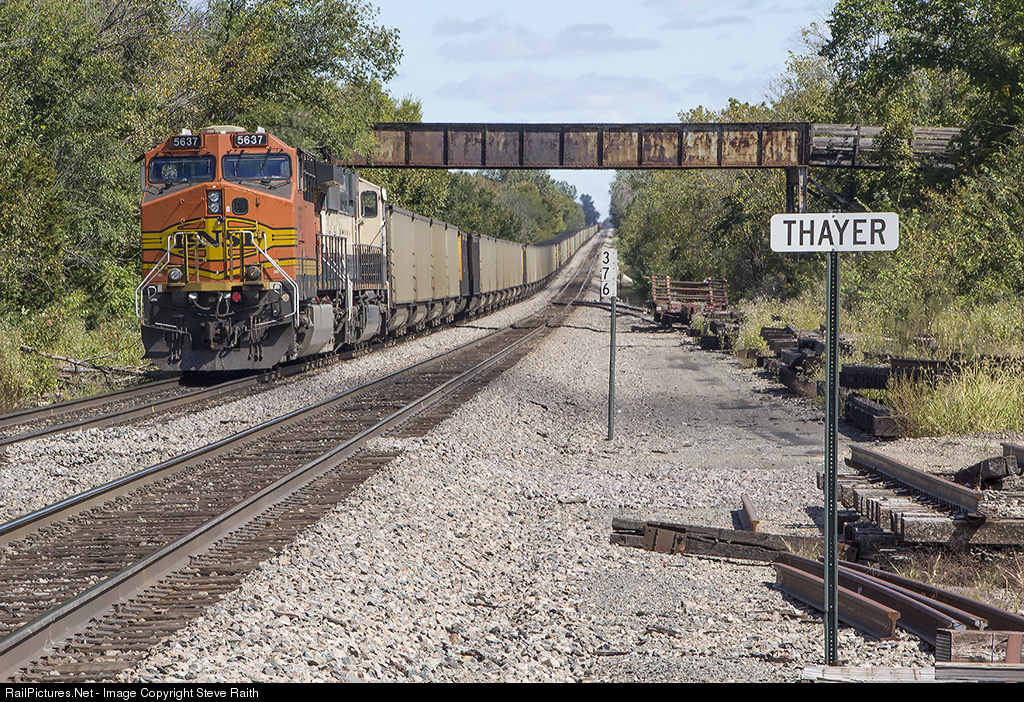 RailPictures.Net Photo: BNSF 5637 Burlington Northern Santa Fe GE AC4400CW at Thayer, Iowa by Steve Raith