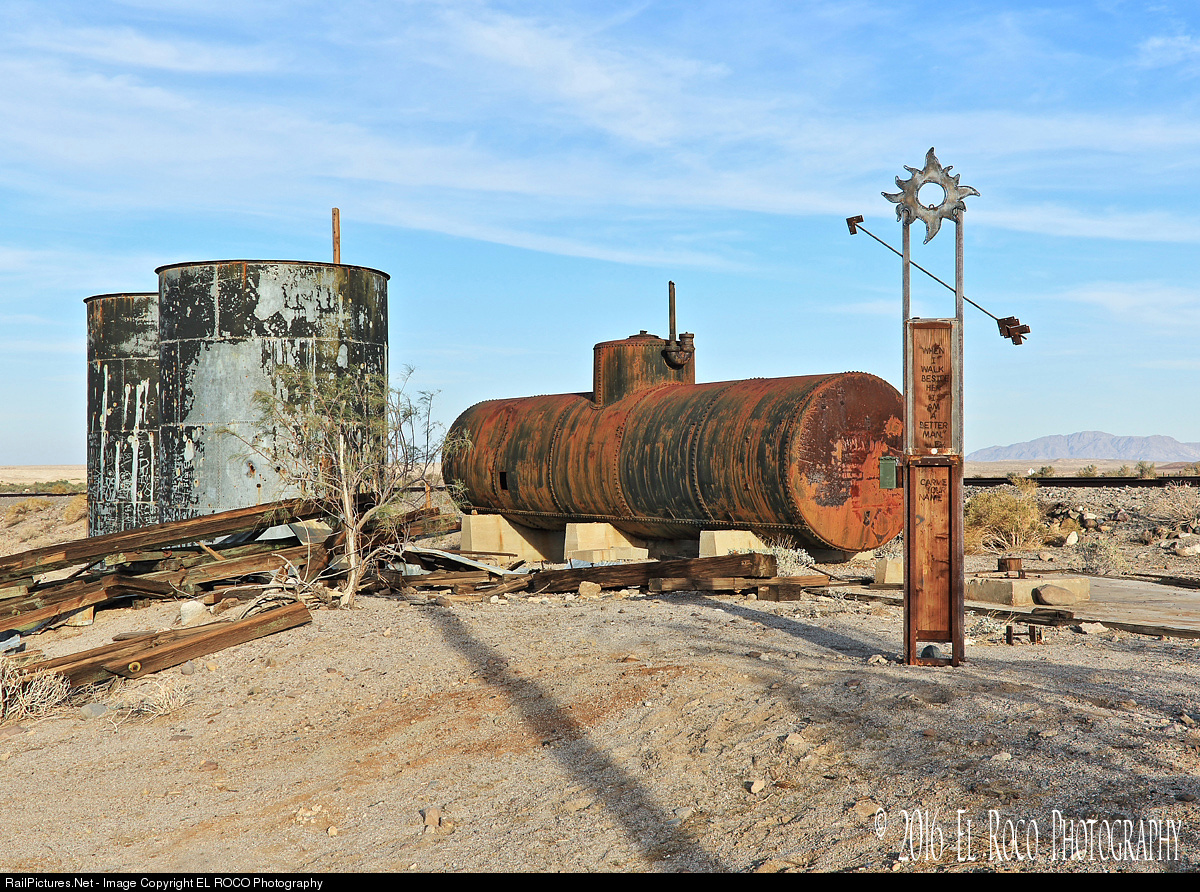 - An oil tank car with two water tanks sits at Coyote Wells California.