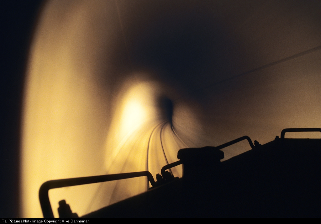 The Thistle Tunnels are twin bores under Billies Mountain in Utah, constructed by Morrison-Knudsen after a massive mudslide buried the town of Thistle in floodwater and closed the Rio Grande main line in 1983. Passing through one of the curved bores on Track 1 is a westbound Union Pacific helper set dispatched to Castilla to help a heavy eastbound UP freight over Soldier Summit.