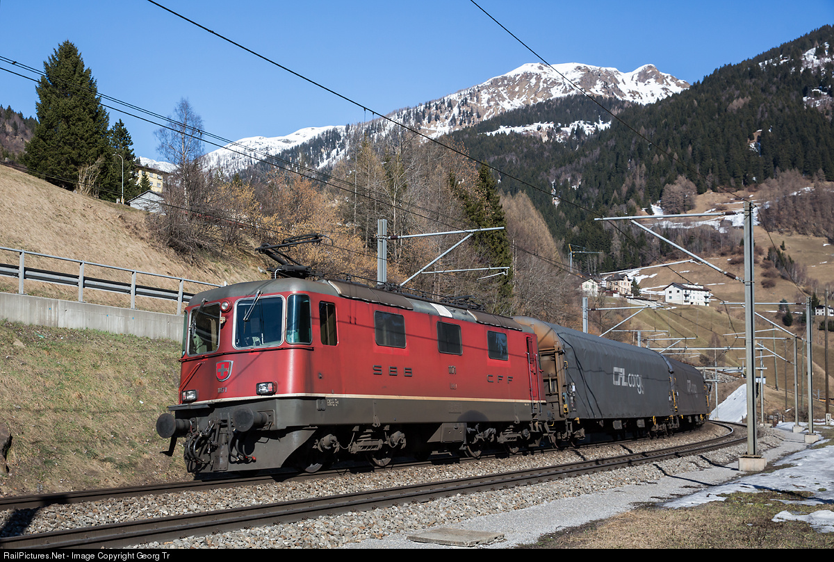 Re 4/4 II # 11171 was pusher over the Gotthard north ramp on this heavy steel coils train, and is helping to brake the train with the electric brake down the Gotthard south side. From Giubiasco to Rivera-Bironico, up the Ceneri ramp, the locomotive will be pusher again. The locomotive is not remote controlled, but operated by a engineer, in radio contact with the leading driver when needed.