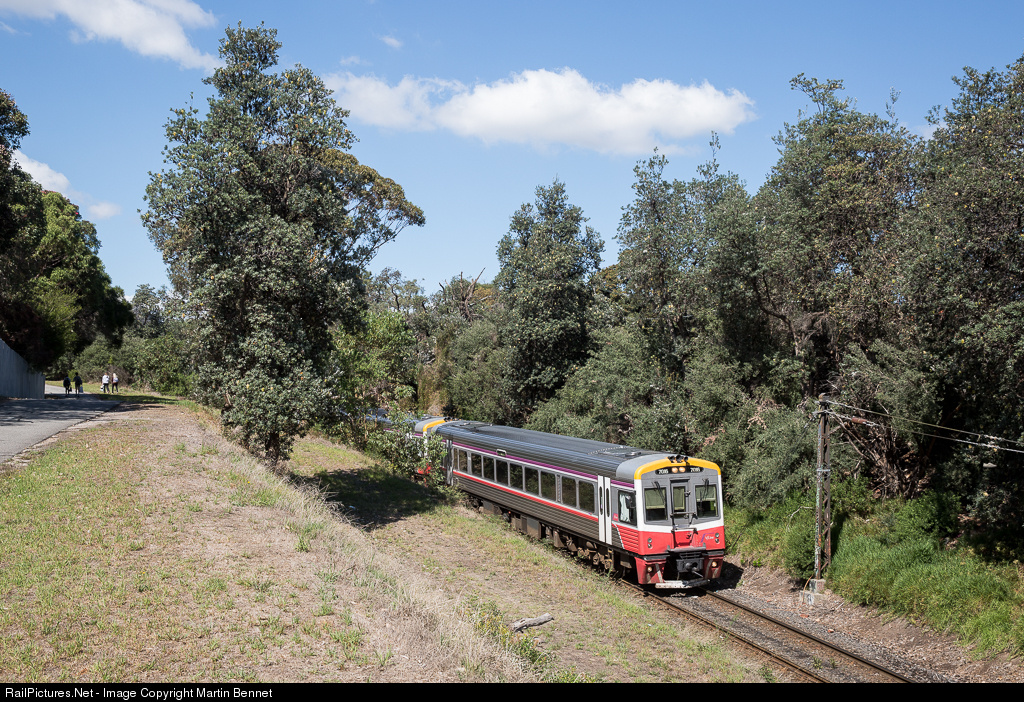 A two car 'Sprinter' set arrives at Frankston with a service from Stony Point. Note the beginning of the electrification to the right of the train. This outer suburban operation is operated by Metro Trains Melbourne as part of the suburban network, but uses diesel sets hired from regional operator V/line.
