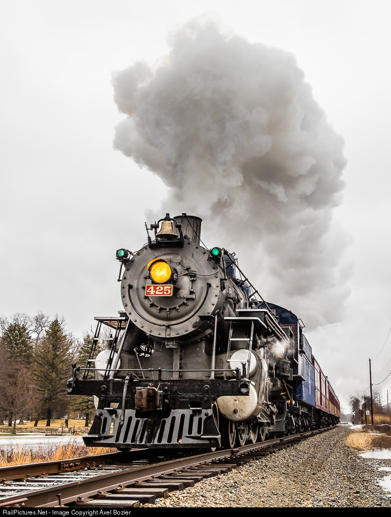 | R&N Baldwin 4-6-2 "Pacific" #425 at full speed, heading back to Port Clinton, PA. A Lerro Productions / Lerro Photography charter. |
