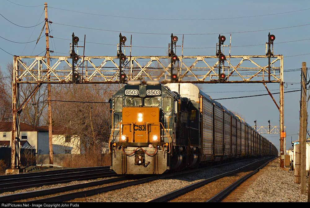 In the last golden rays of sunlight, Q279 passes under the five track NYC signal bridge at CP 433 in Buffalo with a pair of EMD's leading the train west.