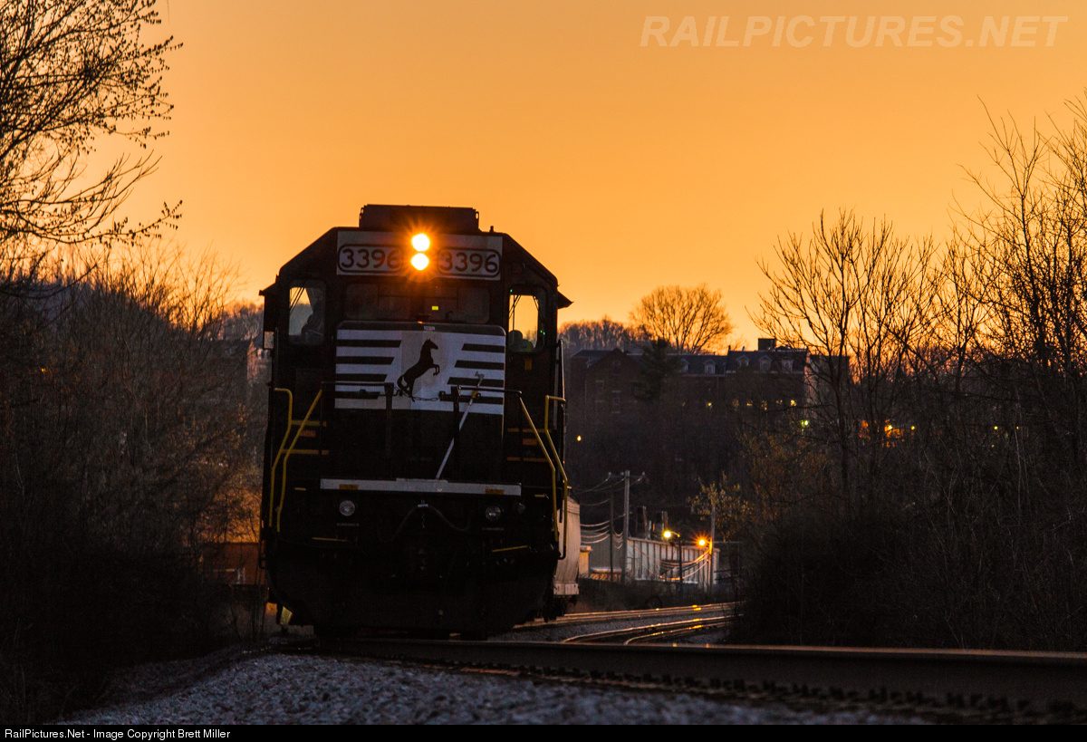 The sun is setting in the west as the local V40 holds on the siding at Schuleen for a clear signal. This pair of EMD SD40-2 locomotives originate out of the Bristol yard and work as far as Rural Retreat moving loads back and forth for industrial parks.