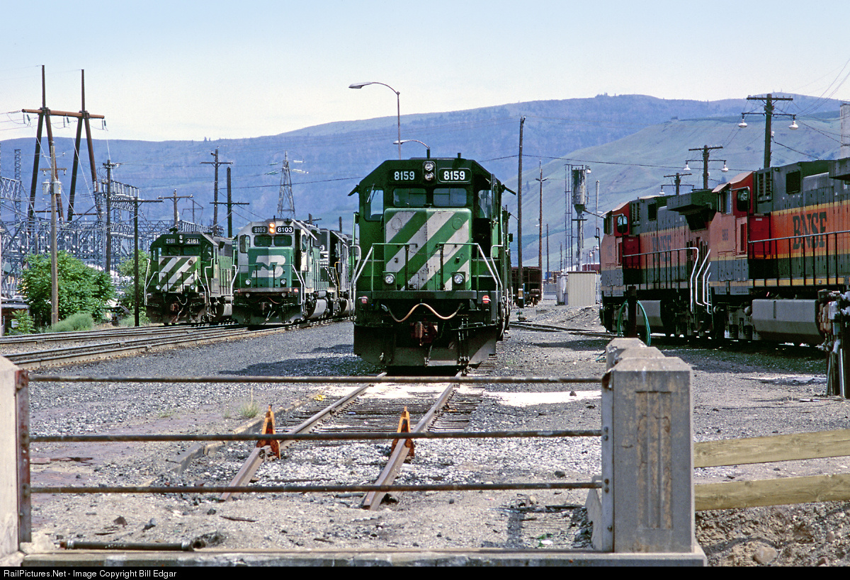 Two new Heritage I Dash 9s take a seat while vintage BN EMDs handle the task at hand at Wenatchee, WA. Both major BN green schemes are shown with a little help from a high hood NS EMD. Business was good, and foreign and lease power was a common sight this summer.