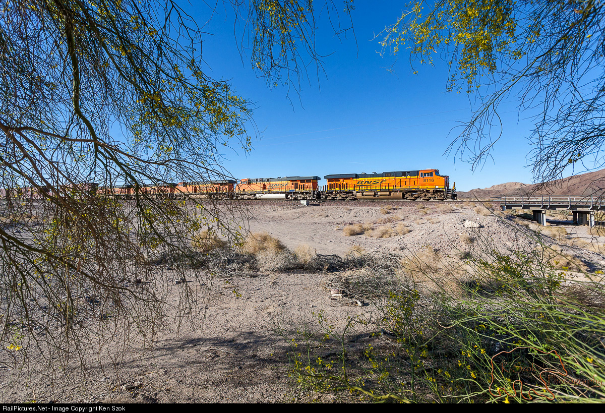 RailPictures.Net Photo: BNSF 8116 BNSF Railway GE ES44C4 at BNSF Needles subdivision, California by Ken Szok