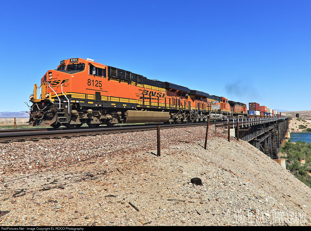 RailPictures.Net Photo: BNSF 8125 Burlington Northern Railroad GE ES44C4 at Topock, Arizona by EL ROCO Photography