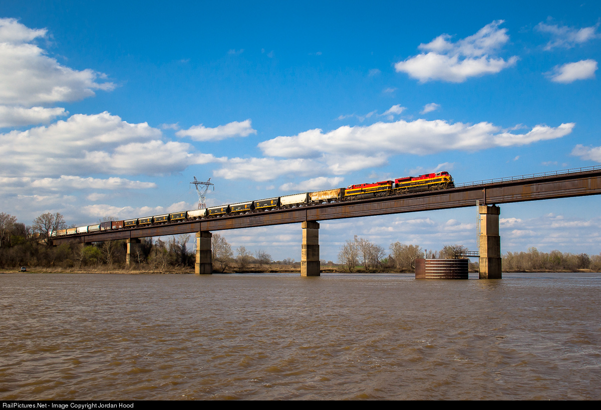 With a beautiful pair of Belles on the point, KCS 4192 south soars over the choppy waters of the Arkansas River on a blustery March afternoon.