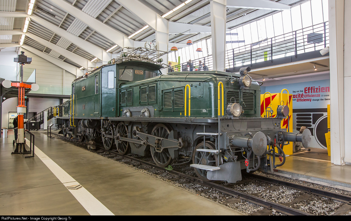 | Another "Crocodile", owned by SBB Historic, is exhibited in the Swiss Museum of Transport in Lucerne (VHS), the Be 6/8 II # 13254. The 126 metric ton locomotive was built by SLM and MFO in 1919 for the newly electrified Gotthard line for freight service and was in operation till 1982. This is a "sister" of the operational brown painted Ce 6/8 II # 14253 in Erstfeld. |