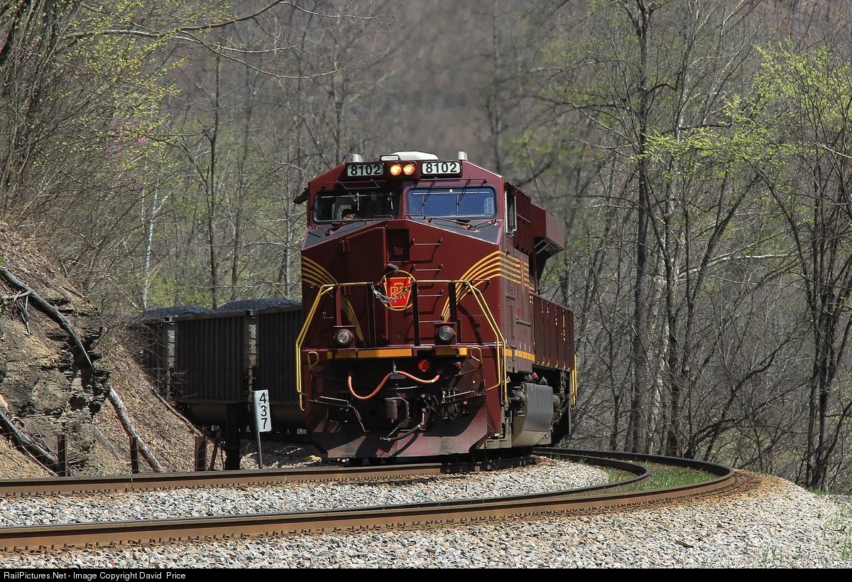 | Pennsylvania Heritage Unit performing pusher duty has just come off the Gilbert Branch and is headed east on the Pokey mainline, caught here in the sharp curve at Old Joe... |
