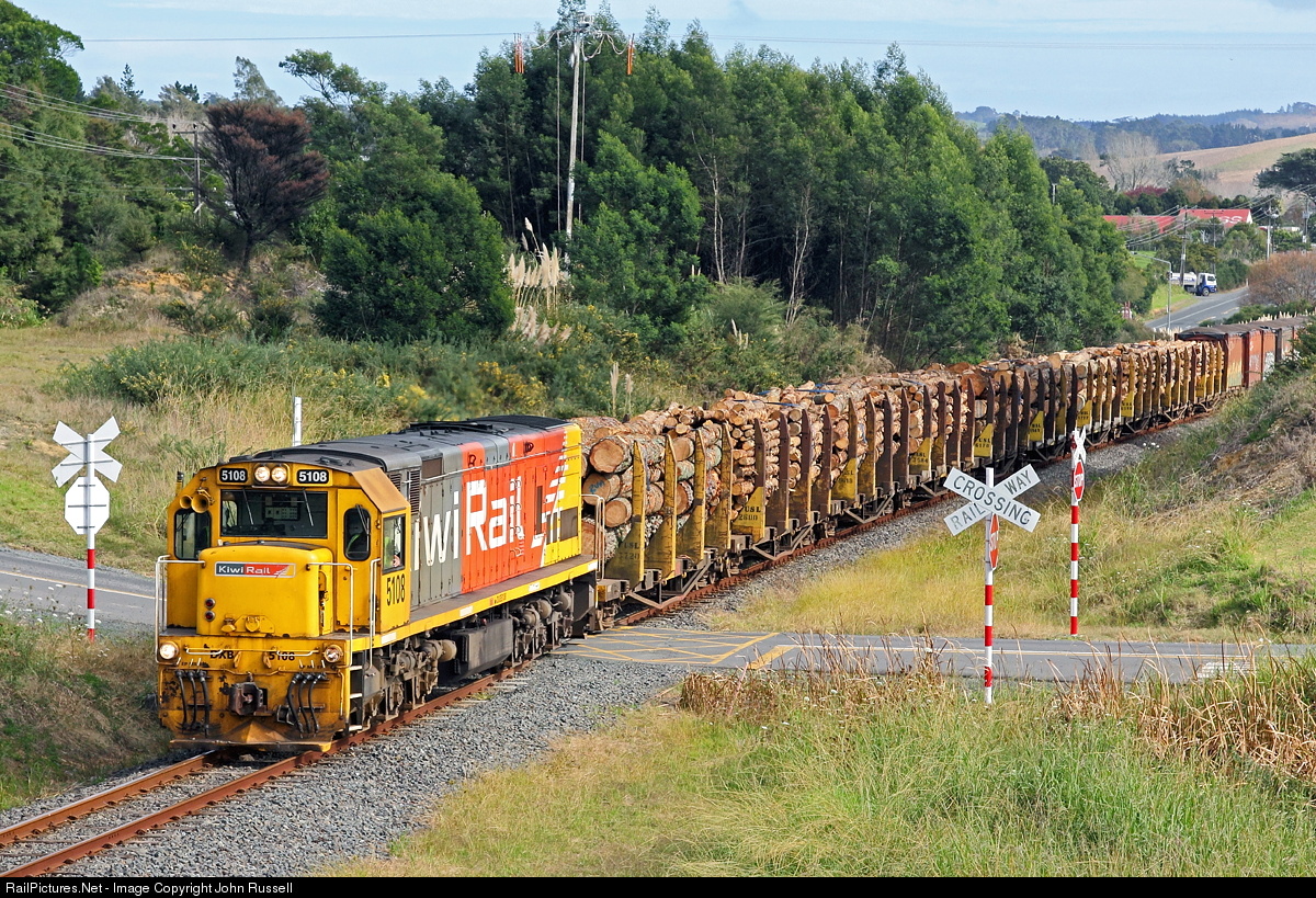 | Train 125 from Whangarei to Westfield approaches Kumeu, a wine producing district just beyond the western suburbs of Auckland. Due to light traffic and the operating costs for a route through very rugged terrain, the line is under threat of closure. DXB is the largest locomotive allowed on the line; even high cube containers don't fit through all the tunnels. |