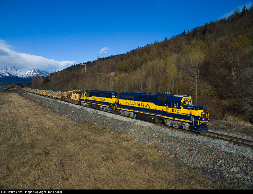 The company work train is loading rock on the mainline at Bird Point. After completing their loading they will run up the hill to MP 59 and dump, then repeat. Spring has arrived in the Last Frontier and the RR is busy getting ready for passenger season that will begin on 5/7.