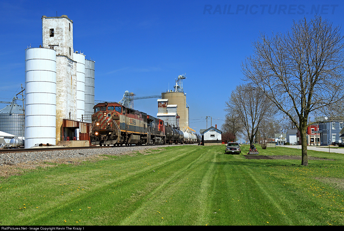 | Its a perfect 78 degrees at Ashku, IL as M37161 screams through town with a rugged BC Rail C40-8M doing the honors. As Spring rolls on, high sun is beginning to show its presence... |
