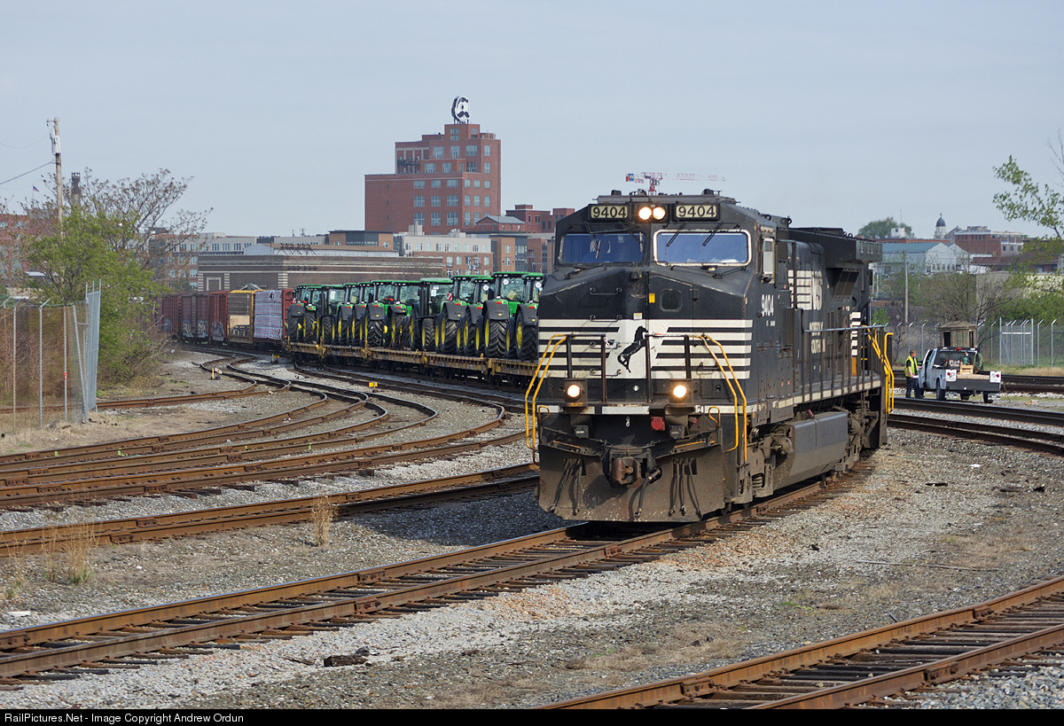 | NS HB48 arrives at 5th Avenue Yard, where it will drop the Canton Railroad interchange traffic, before departing for the Port of Baltimore with the export John Deere tractors. |
