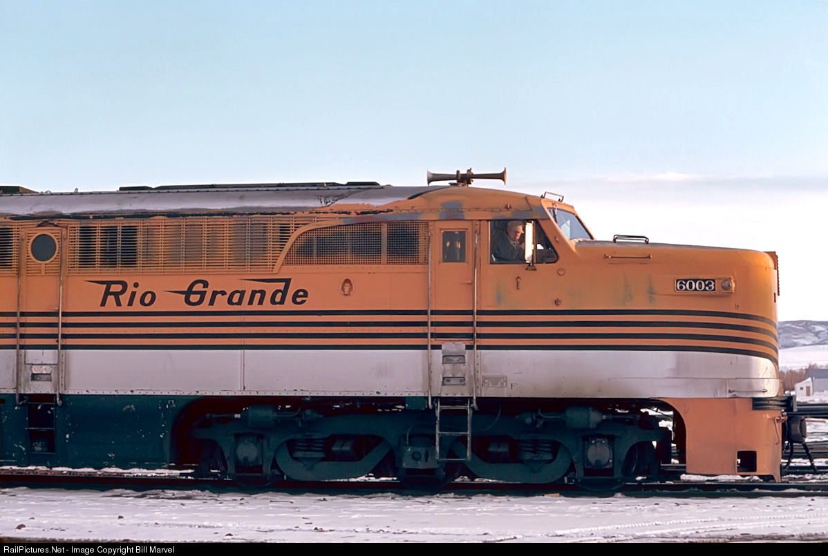 A little over seven hours after leaving Denver with Rio Grande train 9, the Yampa Valley, PA-1 6003 points its nose into the setting sun at Craig on Colorado’s Western Slope. On March 5,1966, this is the end of the line; ahead lie some 300 mostly empty miles to Salt Lake City, the original goal of David Moffat’s Denver Northwestern & Pacific until money ran out and construction stopped in 1913. The 6003, with its baggage car, two dome-chair cars, and business car 96, belonging to the Intermountain Chapter of the NRHS, will overnight here and depart around 8 a.m. tomorrow morning for the journey back to Denver as Train 10. Rio Grande will drop the run in two years, and all six of the Grande’s big Alcos will be scrapped soon afterwards.