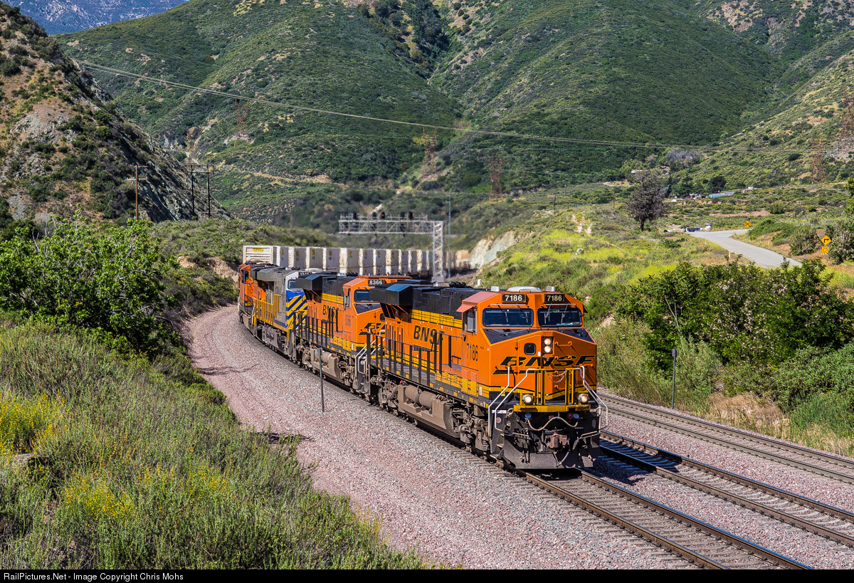 RailPictures.Net Photo: BNSF 7186 Burlington Northern Santa Fe GE ES44C4 at Cajon Pass, California by Chris Mohs