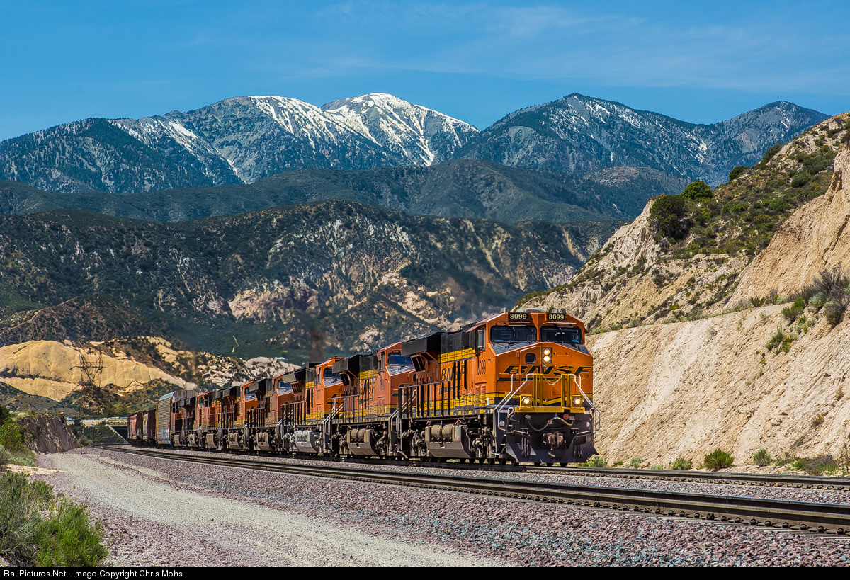 RailPictures.Net Photo: BNSF 8099 Burlington Northern Santa Fe GE ES44C4 at Cajon Pass, California by Chris Mohs