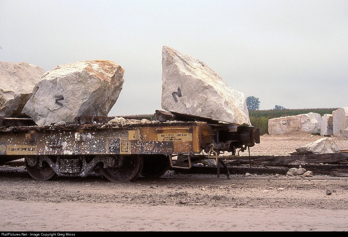 This won't work. This block of limestone will need some readjustment before it can make its trip to Manitowoc for a breakwall in Lake Michigan. These blocks were not secured in any way due to the low speeds.