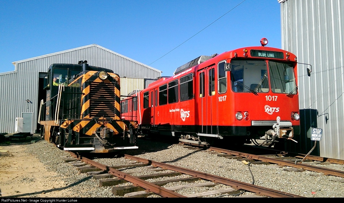Visalia Electric 502 leaves the shop to go perform some switching as it overtakes SDMTS 1017 at the Western Railway Museum