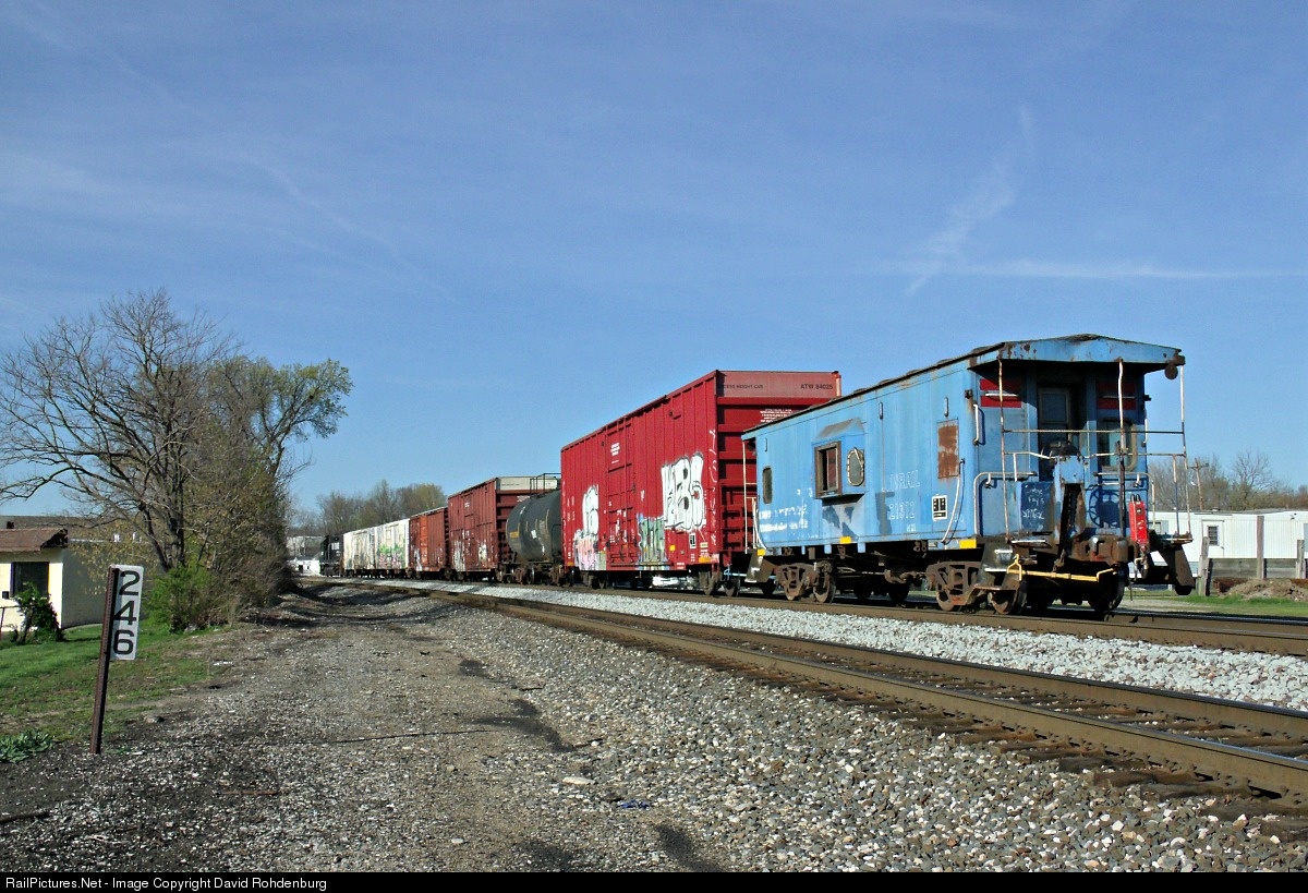 A former Conrail caboose trails NS local freight TS29 out of Sharon Yard at CP 246 as they head out to switch out a couple of customers between here and Milepost 245.
