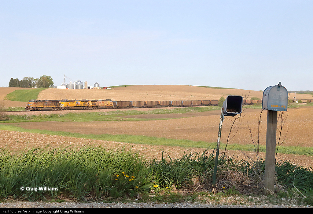 Coal business has really taken a hit in 2015 and so far in 2016. Coal trains were once very common along Midwest mainlines. Here on the UP one can still see a few coal trains, as seen here as a westbound coal bucket works upgrade in Le Grand. This was the only coal train (load/empty) seen all afternoon.