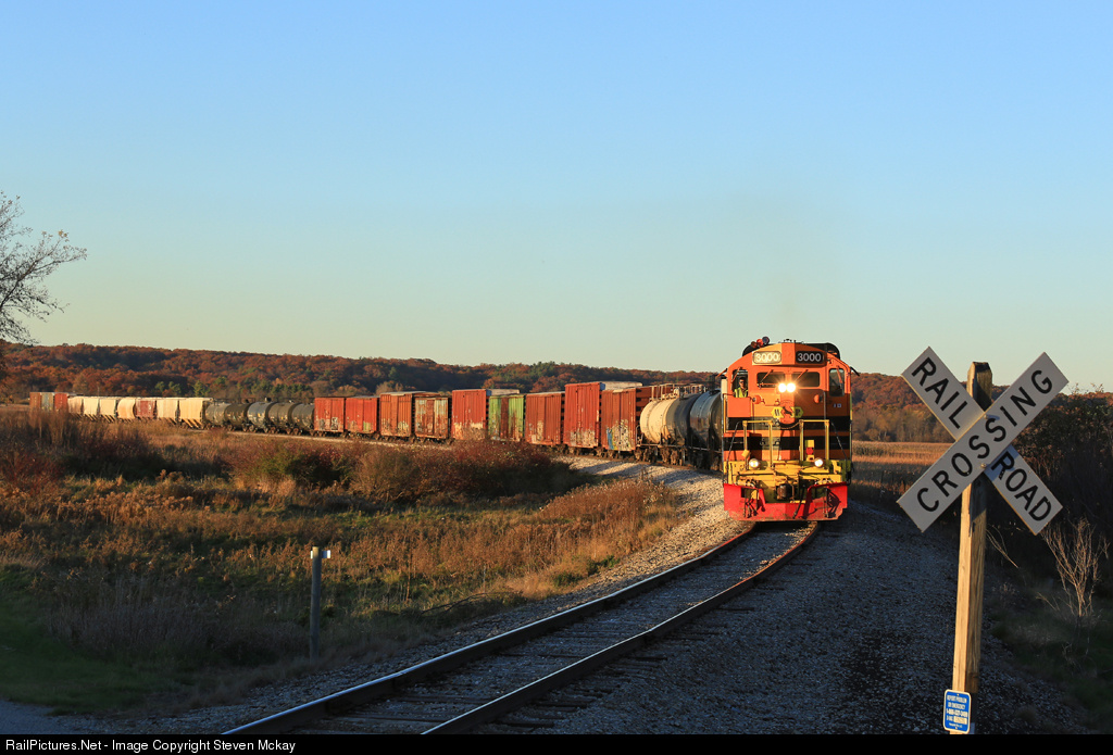 | The Manistee yard job comes around the lake and through East Lake as it heads for Stronach for a crew change. This was about the end of fall peak season and the 3000 added a nice amount of color. |