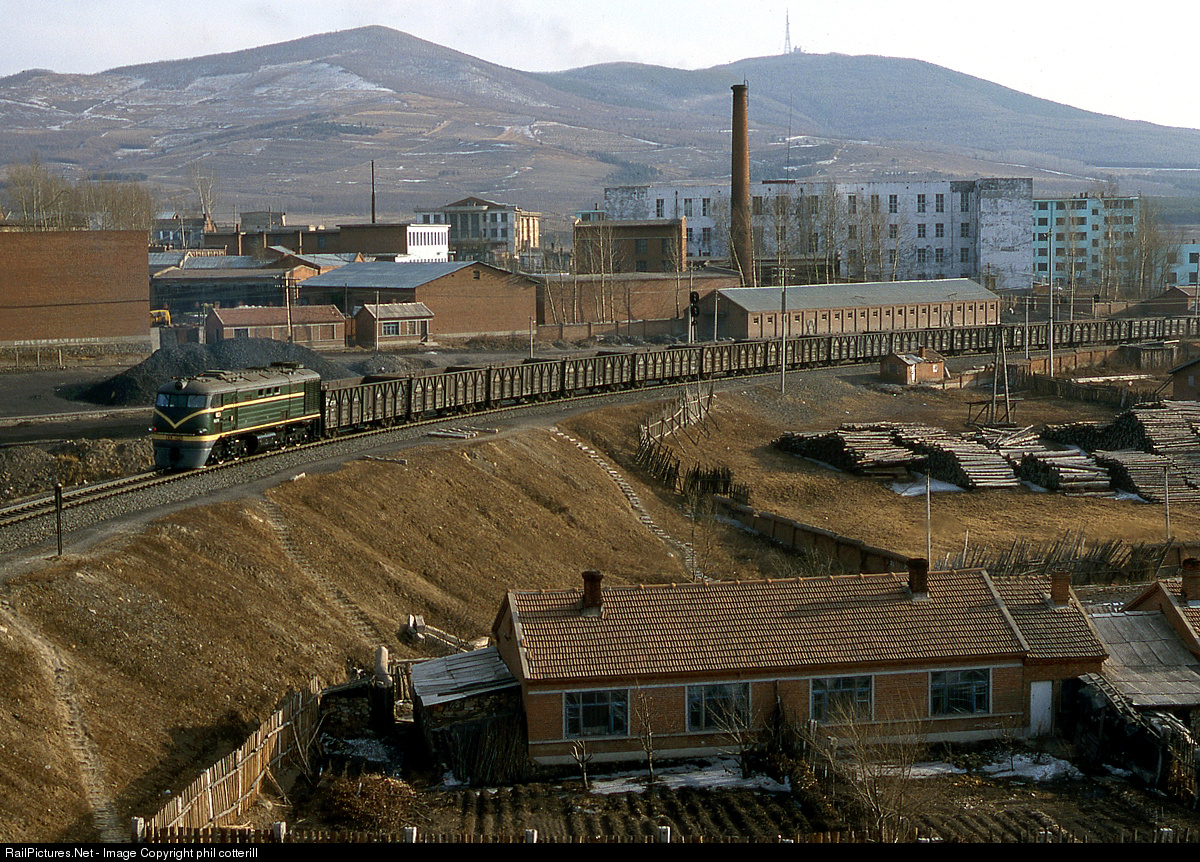 A DF class loco passes Dongjing on the Shuangyashan mines system. These locos were in the process of replacing steam here, and I would guess that they were older than the steam locos.