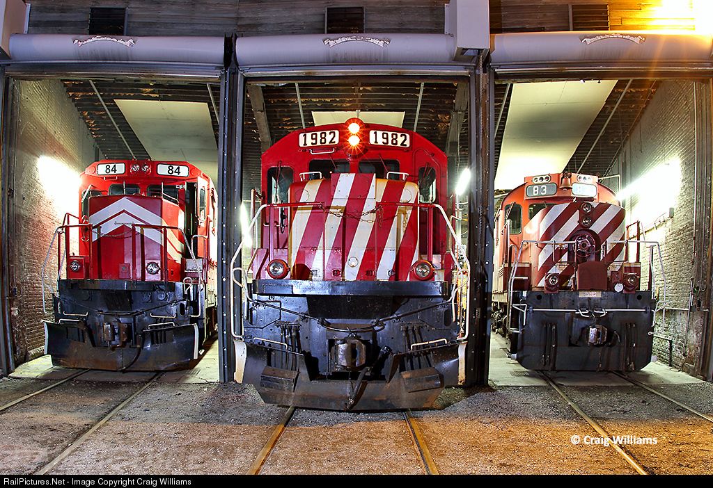The Minnesota Commercial has one of the most interesting rosters. This small shortline does local work and interchanges around the St. Paul and Minneapolis area. Here a private night shoot was put around their shops area in Prospect Park. From left to right is the #84, a B39-8 (ex-LMX), the #1983, a B23-7 (ex-Conrail), and the #83, a RS18U (ex-CP).