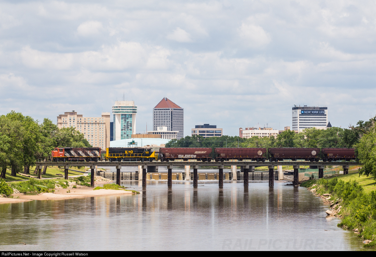 The K&O handles a BNSF grain train interchanged by the BNSF.