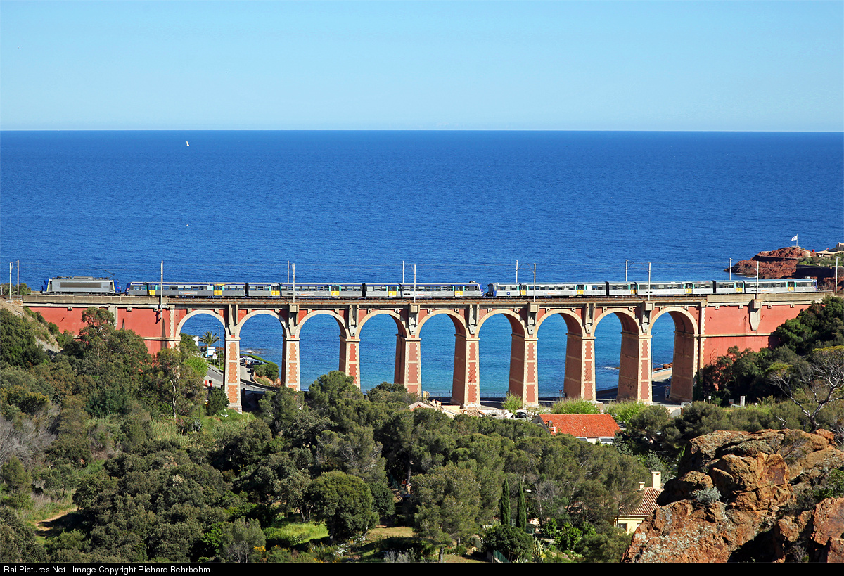 | The trainset with BB 22200 and RIO coaches is a push-pull system. An unknown locomotive is pulling TER 81223 Les Arcs Draguignan – Nice. |