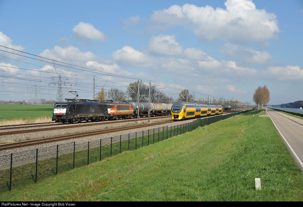 Locon 189 097 with Locon 9903 and a kettletrain from Bad Bentheim to Kijfhoek yard meets a EMU type VIRM from NS running from Utrecht to Amsterdam.