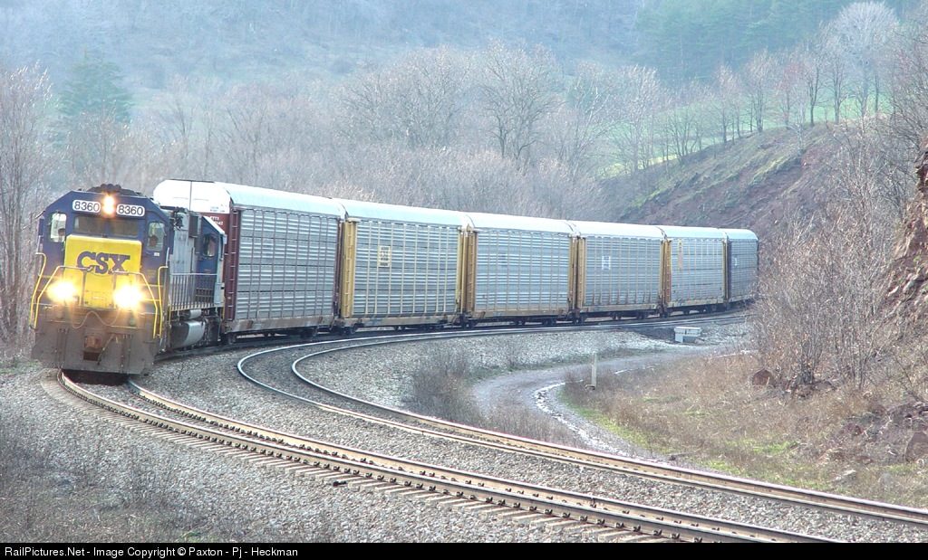 CSXT 8360 leading an autorack train thru the horseshoe curve past the Mance Training Camp