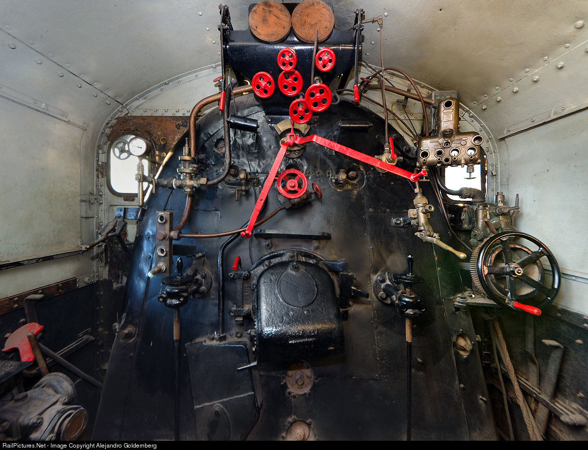 Inside 12L Class, the most powerful steam loc in Argentina, also known as "Caprotti". This model was introduced after WWII to run Express trains over Mitre, San Martin and Roca line. Most of them were scrapped after dieselization except two: One is exhibited in Junin and the other named "Lago Moreno" is displayed here at Ferroclub Escalada facilities.