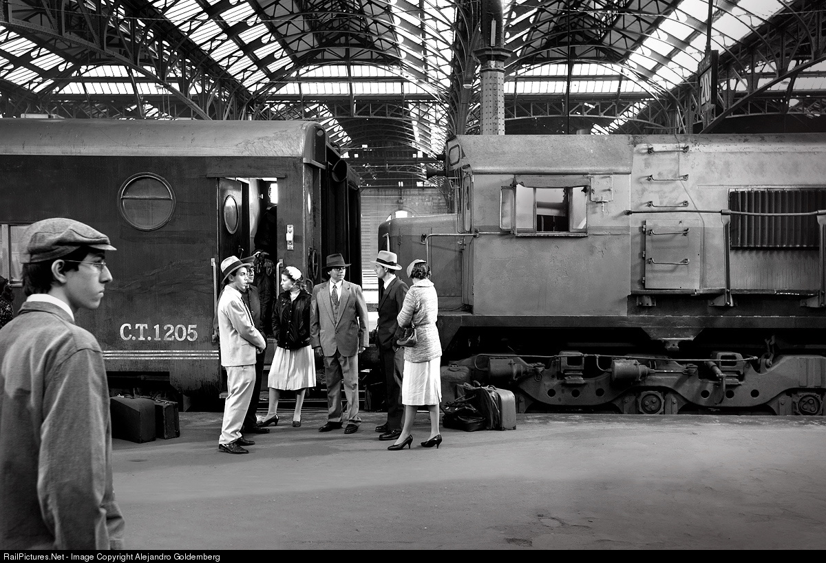 Ferrobaires consist specially painted with Ferrocarriles Argentinos livery, for a film set called "The black cat". Here is rolling one of the scenes with people dressed like in the 60's, altough the loc is from the 70's..