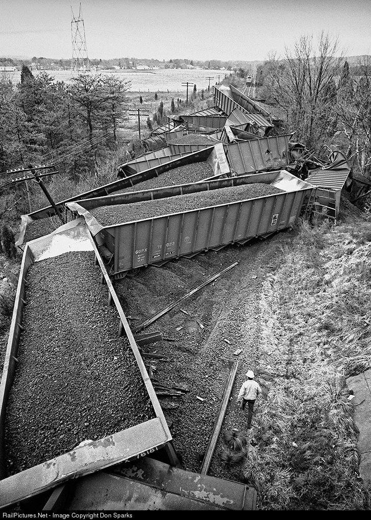 An L&N unit coal train derailment near Alnwick, Tn around 1978. I took this photograph from an overpass with a 24mm lens mounted on my trusty Nikon F.