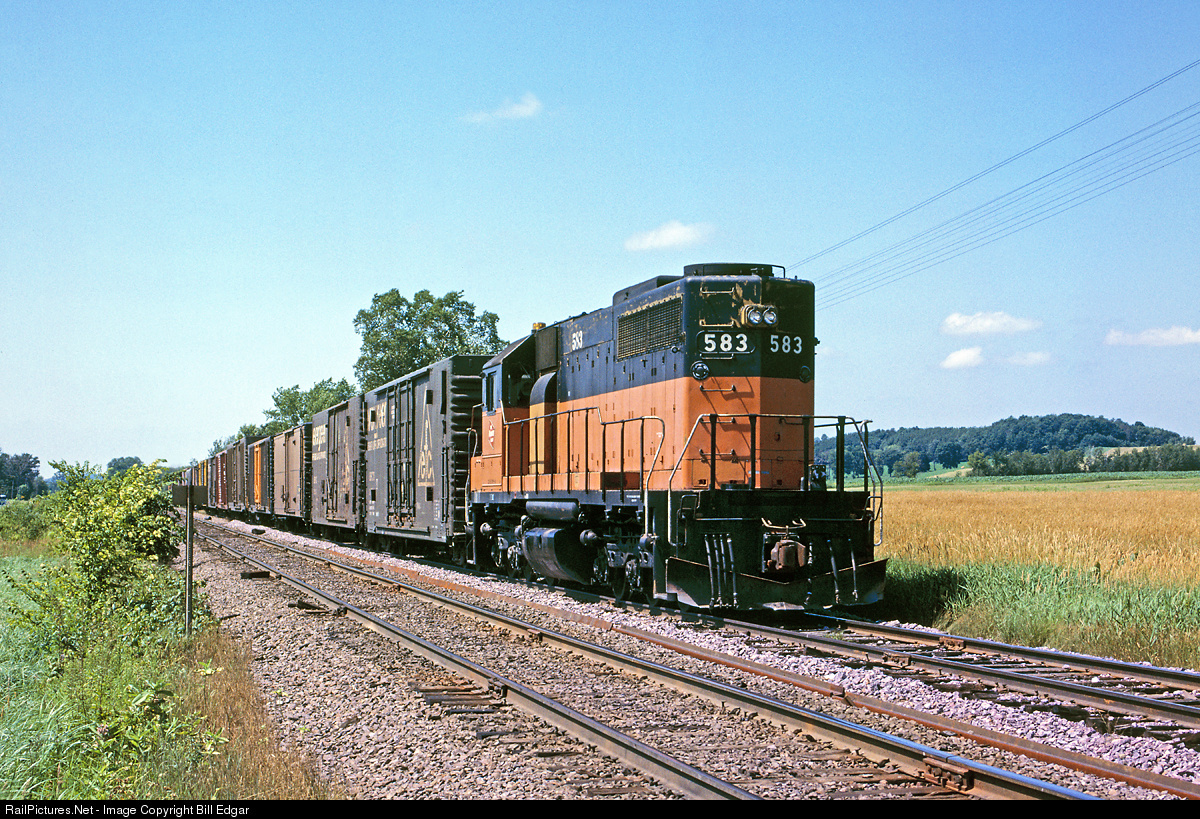 Milwaukee Road's local to Eau Claire, WI was shifted to CNW trackage rights in the late 70s from their own line between Eau Claire and Trevino, WI, then CBQ trackage rights to Winona, MN. This train is parked at Tramway siding as the crew could not make the trip to Eau Claire without a dog catch crew. Milwaukee discontinued service to Eau Claire in the 1980s.