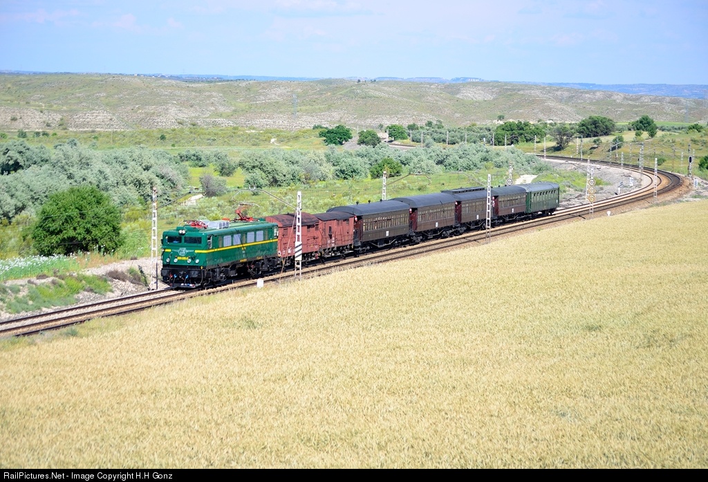 | Historic and turistic "Strawberry train" in route Aranjuez-Madrid whit japanese locomotive 289.015, ex Renfe-freight. Thanks to my friends Gonzalo Rubio and Pablo Diéguez, great railfans and adventurous of railway. ¡¡Thanks RP for publish a special pic!! |