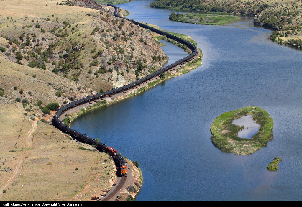 Following the banks of the Missouri River in Montana’s Lombard Canyon is a westbound BNSF oil train on the afternoon of June 25, 2015. The scenic canyon is located between Lombard and Toston, on Montana Rail Link’s Second Subdivision.