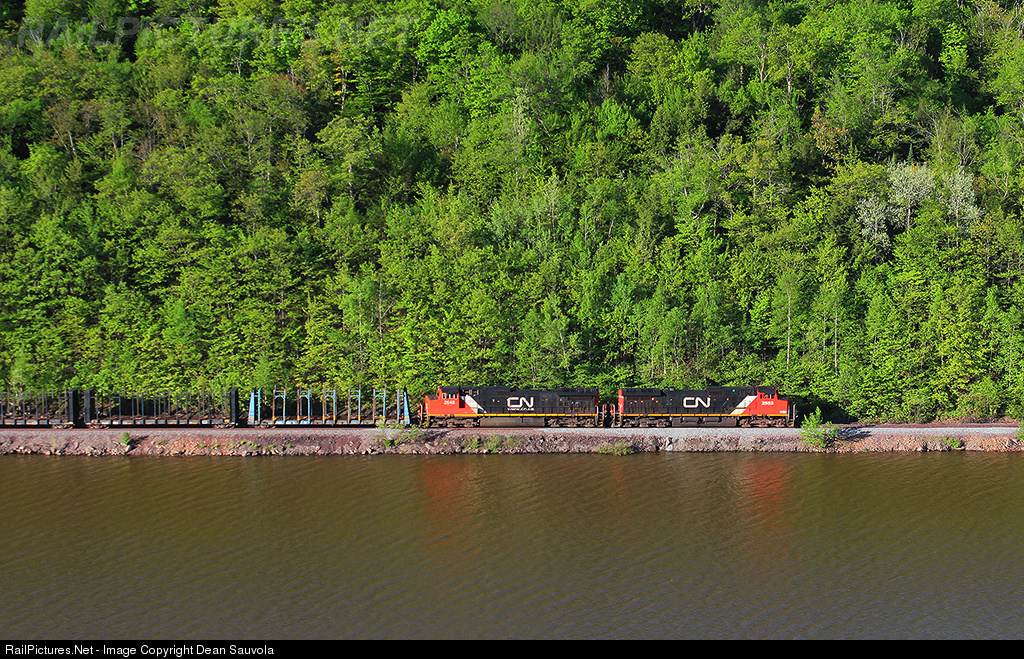 The Marquette Range Sub wayfreight is on the way to interchange cars with the LS&I at Queens and pick up southbound CN traffic at Partridge Siding. It is skirting the shore of Goose Lake. The old C&NW route has also been a Union Pacific line and Wisconsin Central track in the years preceding CN.