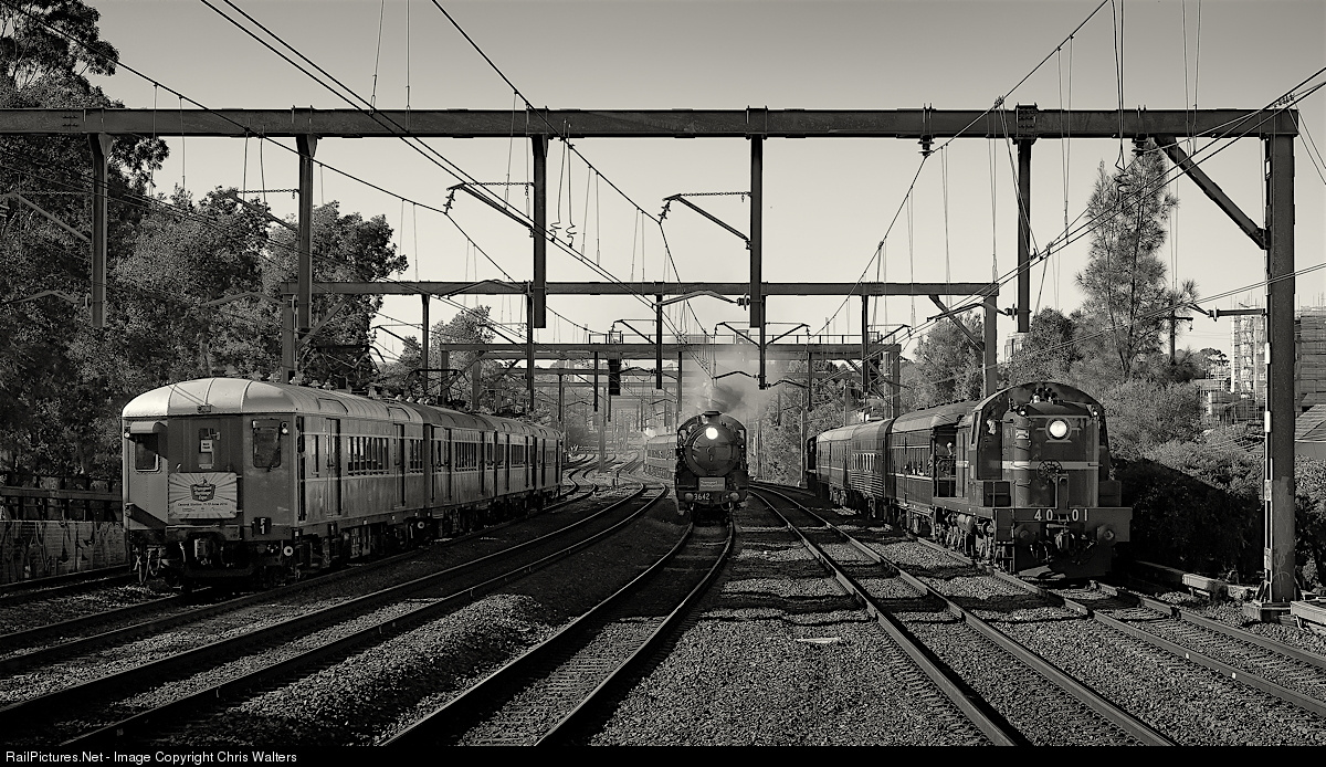 THE GREAT TRAIN RACE The feature event of the 2016 Transport Heritage Expo, the Great Train Race featured heritage 'red set' F1 on the Down Main, 4-6-0 steam locomotive 3642 on the Down Suburban, and MLW-built 4001 on the Down Local. Electric vs Steam vs Diesel The three were running in parallel from Redfern/Macdonaldtown to Strathfield in Sydney's Inner Western suburbs.