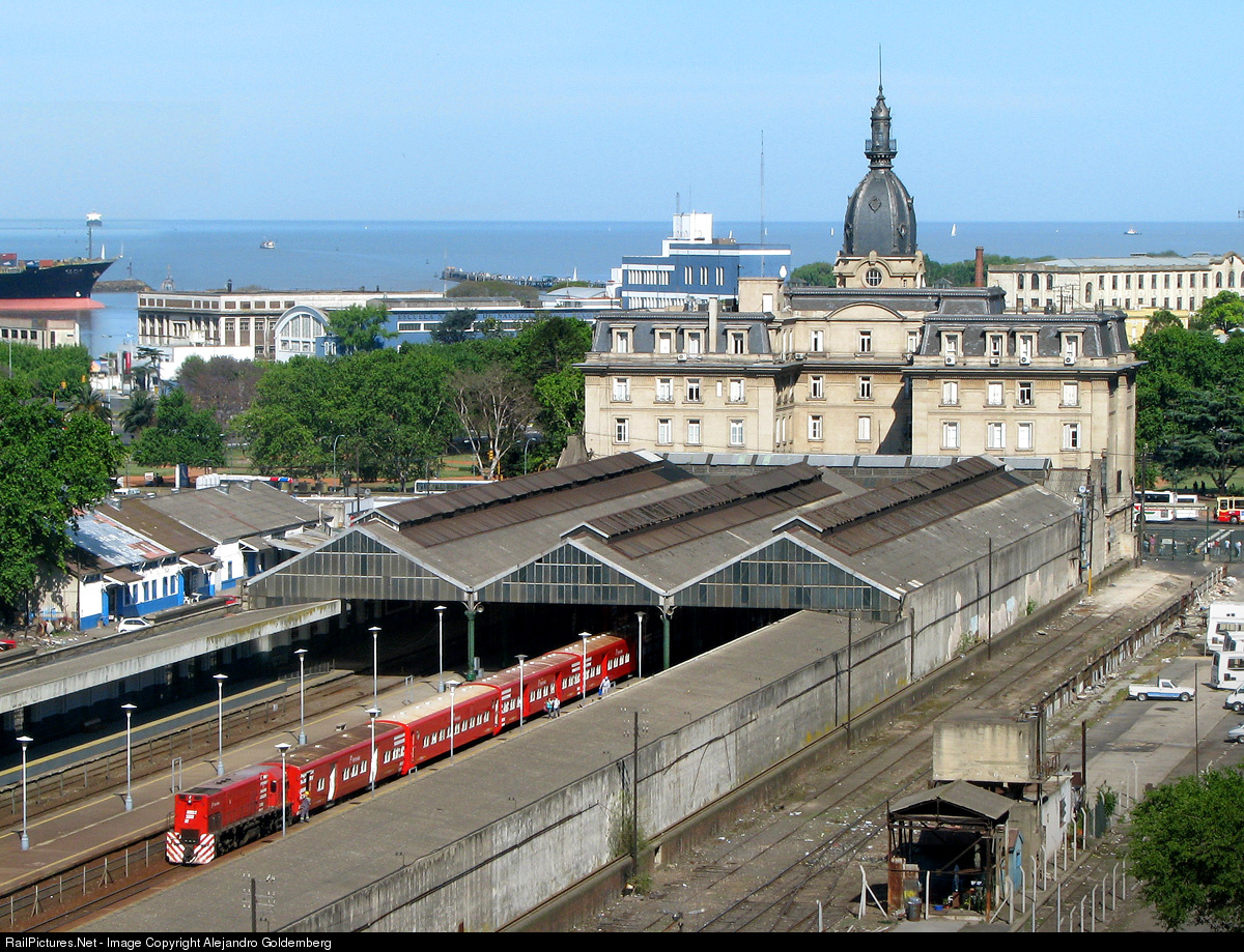 Retiro F.C. Belgrano Station. Opened to public service since 1914, now this line carries 5,5 million people per year. At background is seen Port of Buenos Aires and Rio de la Plata