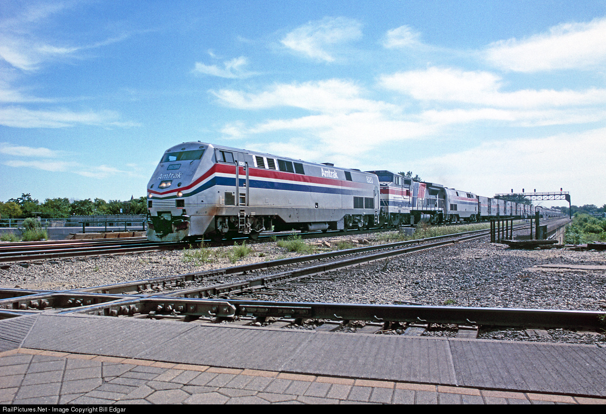 Amtrak train 4, The Southwest Chief slows for its arrival at Joliet, IL on its last lap into Chicago with an interesting power combination on the point. In 1995 Amtrak had a pretty healthy express business from the looks of this train. I noted that trains 3 & 4 now run on BNSF's former BN main out of Chicago, thus not serving Joliet any longer.