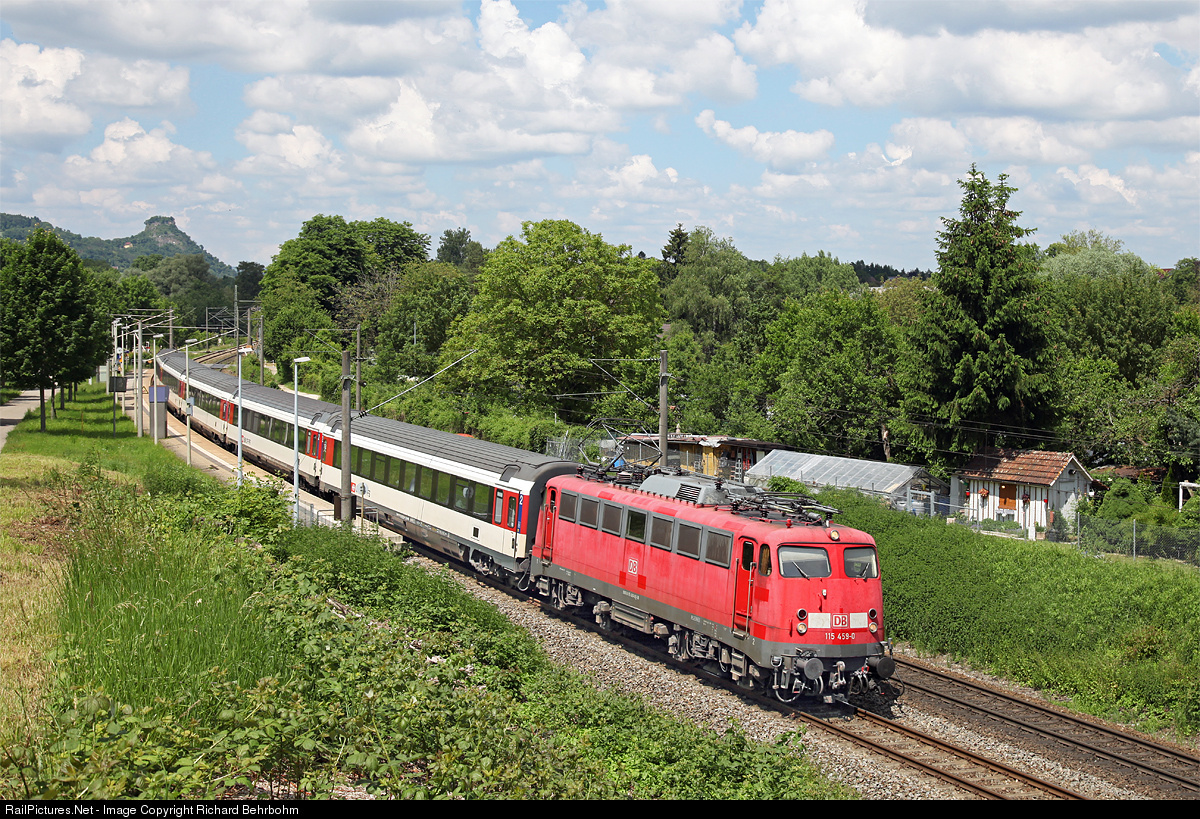 | Occasionally there are locomotives of the 1960s in operation for leading Intercity trains Stuttgart – Singen (- Zürich). 115 459 (built 1967) could use maybe a new painting! |